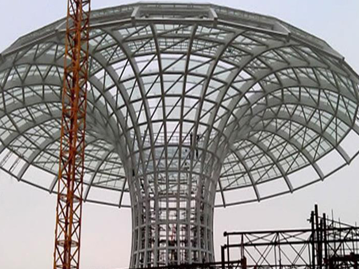 二、球形网架结构因其结构新颖,受力合理,自重轻、用钢量低等优点。如大型体育场馆球形黄山螺栓球网架、公共场馆球形网架、电厂黄山螺栓球网架、水泥工业球形网架、仓储物流球形网架、黄山干煤棚工业球形网架、黄山收费站黄山加油站球形网架、展览中心、影剧院、商场、航站楼、候车厅、工厂黄山车间、仓库、电视塔等球形螺栓球节点网架。国内球形网架结构主要分为:黄山焊接球节点网架及螺栓球节点网架两种。螺栓球节点网架其构件工厂内加工量较大,现场安装便捷,适用于现场工期紧,黄山施工条件、用电量受制约,网架形状复杂、黄山杆件定位困难的异形结构。螺栓球节点球形网架系统基本由黄山杆件、螺栓球、支撑支座等组成。按照节点形式可分为交叉黄山桁架体系、四角锥体系、三角锥体系等。支撑方式多为固定支座支撑。对于大面积、大跨度及有特殊受力或伸缩要求的网架结构可采用橡胶支座、滑移支座、球铰支座等支撑形式,以满足结构自身的受力稳定、均衡,便于内力释放等设计要求。